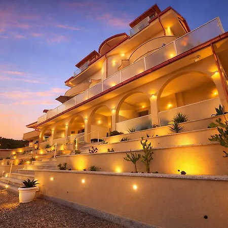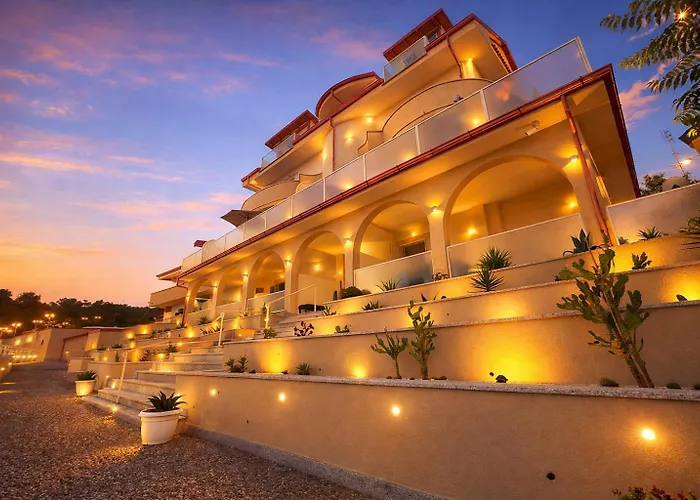 Das 4-Sterne-Aparthotel Bloom Tropea Ciaramiti bietet eine Terrasse mit einem Esstisch und Essbereichen im Freien und liegt circa 3 km vom Strand Lido Blanca entfernt.
